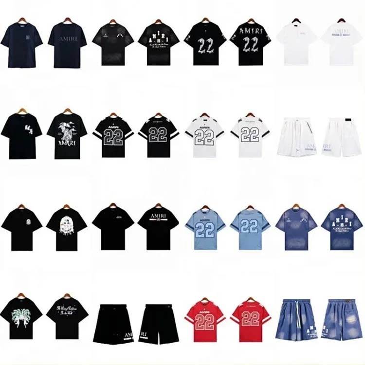 AMIRI New logo number 22 washed retro couple trendy sports 5-point shorts suit-1916
