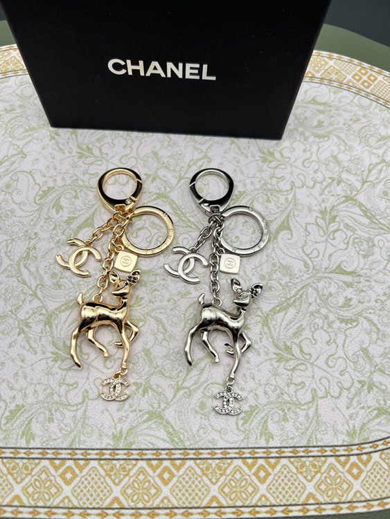 Chanel double c rhinestone pearl deer keychain-3835