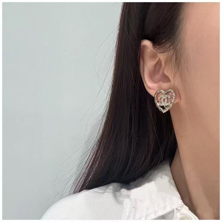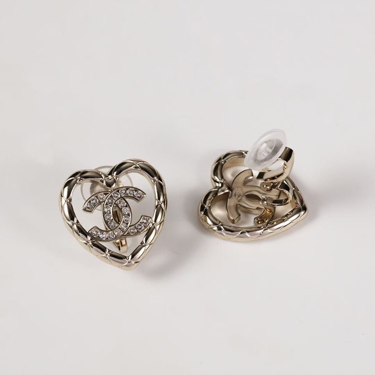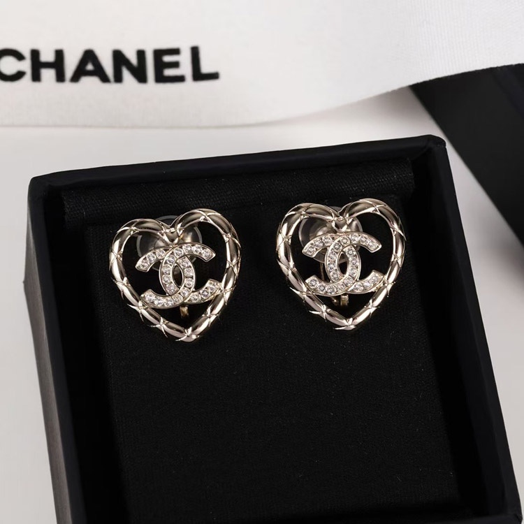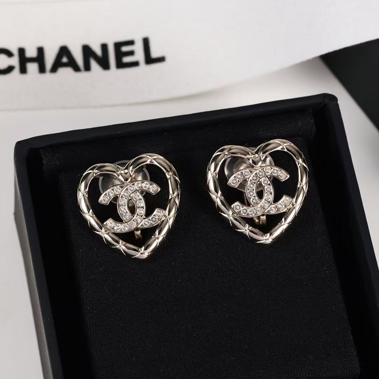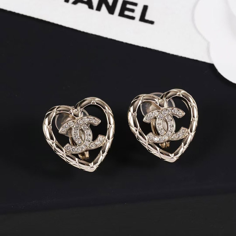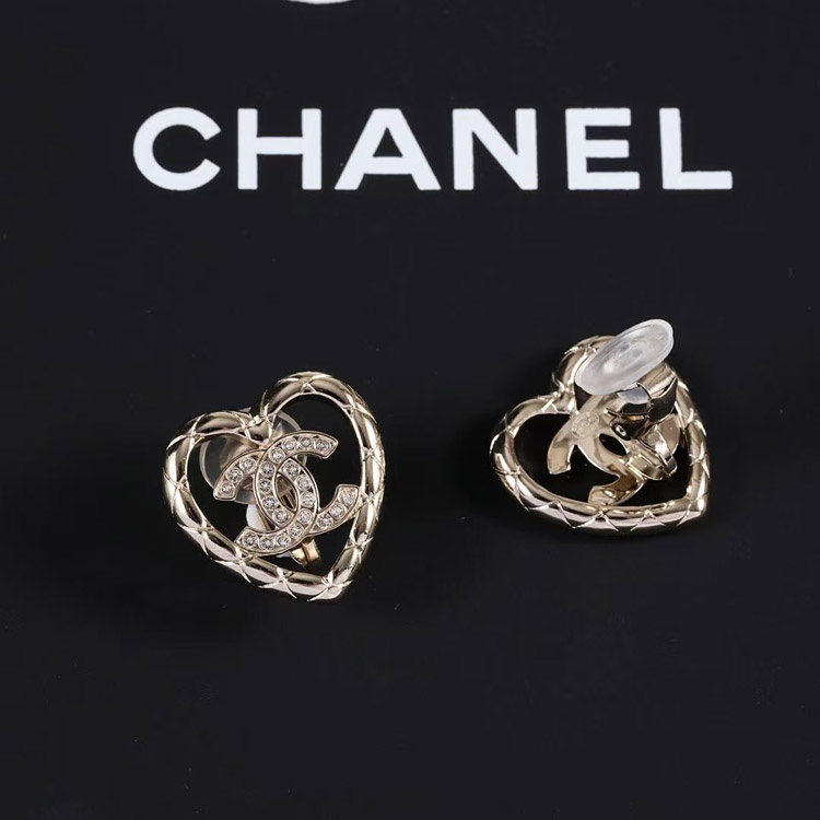 Chanel gold diamond heart hollow double c rhinestone ear clip-3754
