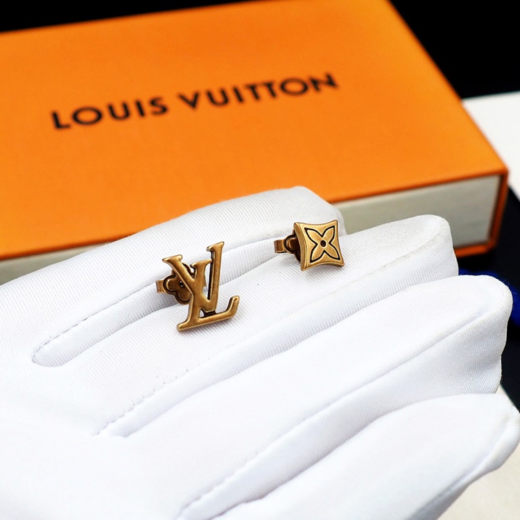 Louis Vuitton LV Letter Floral Brass Distressed Earrings-3575