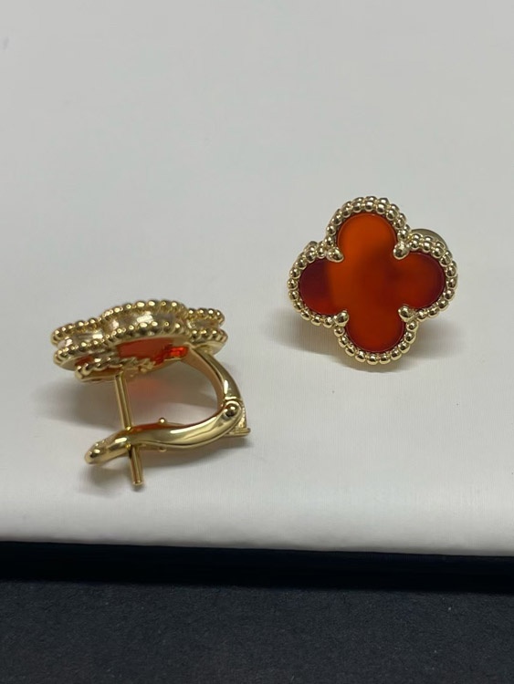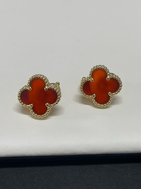 Home > Van Cleef & Arpels Red and White Four-Leaf Clover Earrings-3700